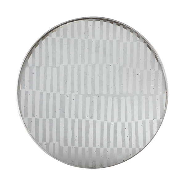 NM round mirror tray – silver leaf tribal stripe – light aged – silver leaf 61/61/4