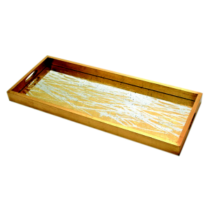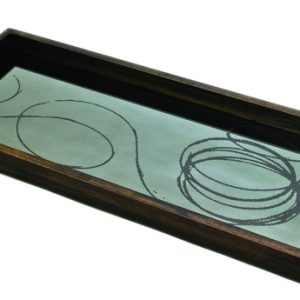 NM rectangle bronze mirror tray – stained burgundy ikat – medium aged 61/46/5
