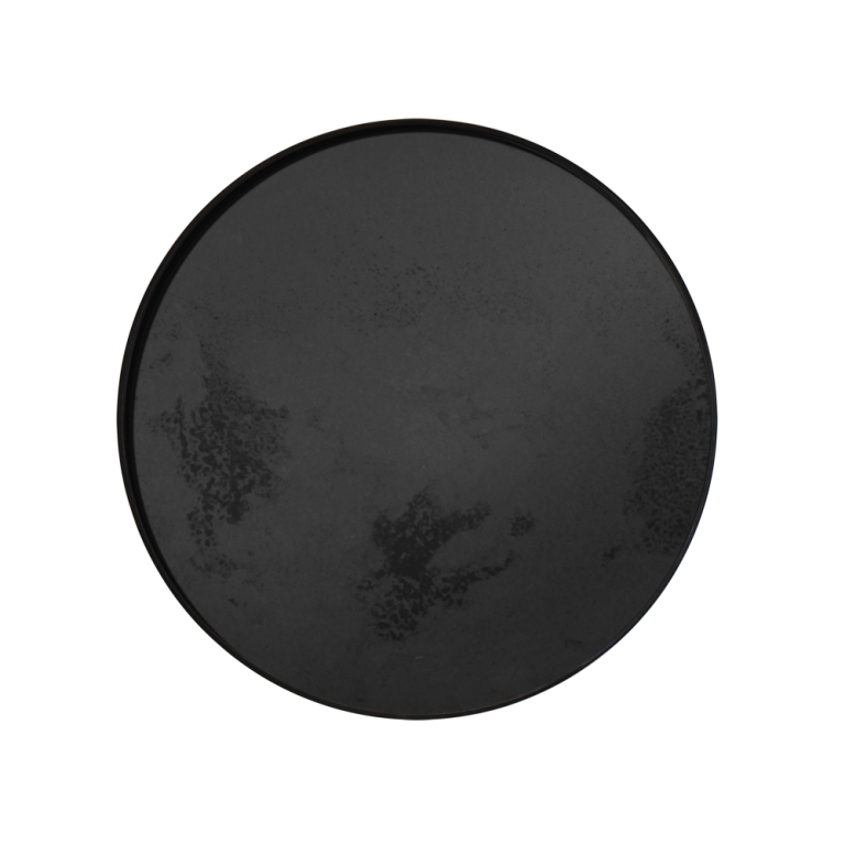 NM round charcoal mirror tray – black heavy aged – silver leaf oil rubbed 48/48/4