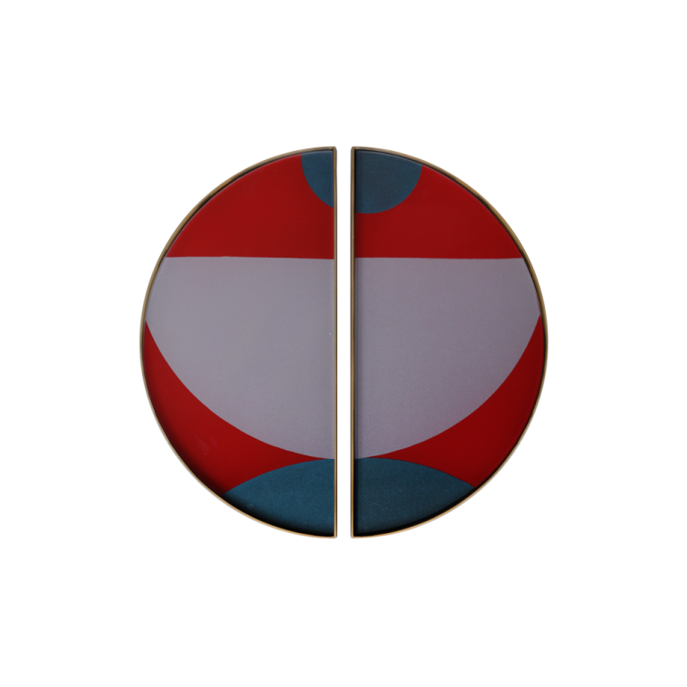 NM round mini glass tray – half moon brass metal rim – blue pink Blush Curve – red 30/30/3
