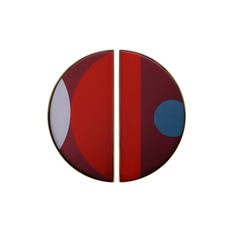 NM round mini glass tray – half moon brass metal rim – blue pink red Garnet Curve – burgundy 30/30/3